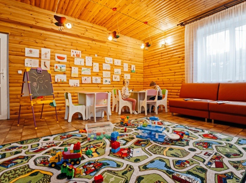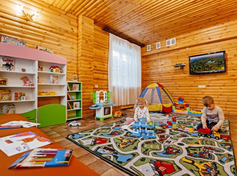 Родители могут оставить малышей на время в детской комнате под присмотром воспитателя, также дети могут провести время на детской площадке.