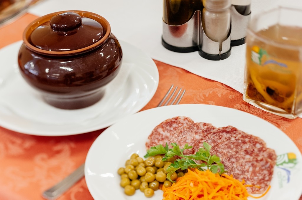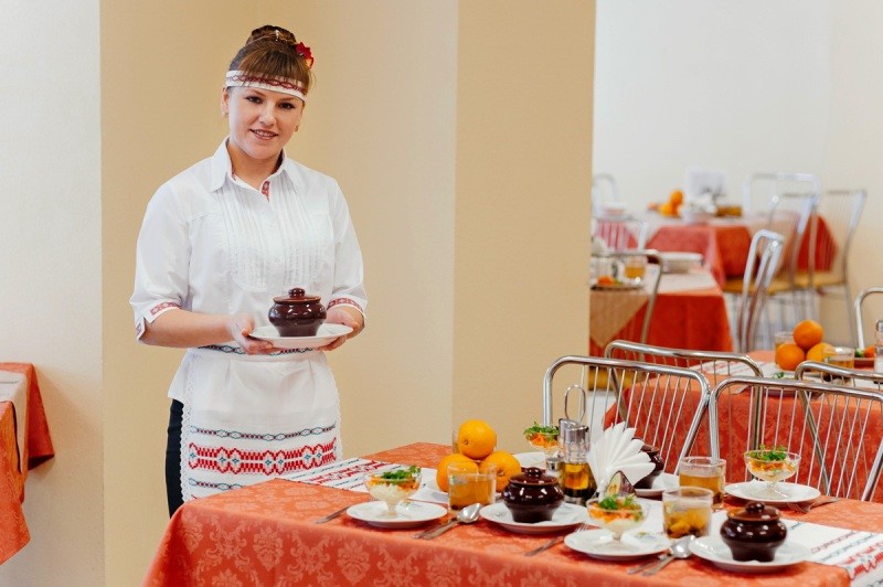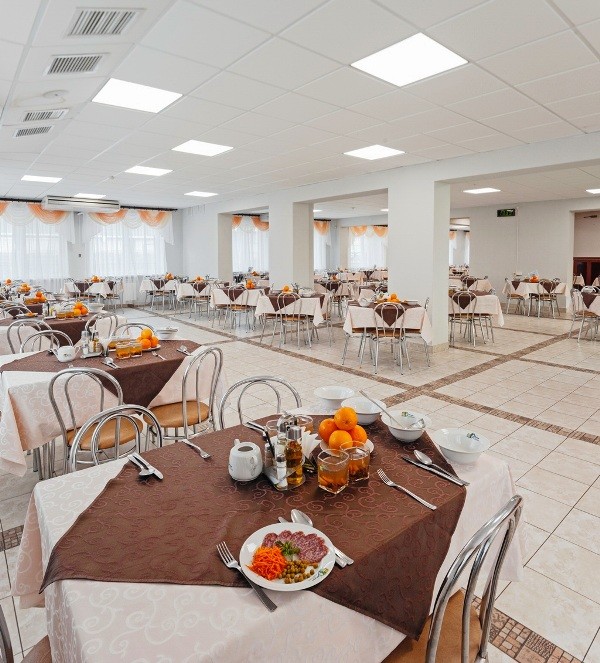Питание в санатории организовано в основном корпусе на 2 этаже в 2 обеденных залах на 270 мест. Имеется банкетный зал на 12 мест.